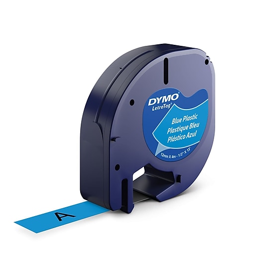 Dymo LetraTag Plastic Label Tape - Black on Blue - S0721650 - Staples Dymo LetraTag Plastic Label Tape 12mm x 4m in Black on Blue, Created specifically for Dymo LetraTag Plastic series label makers. LetraTag Plastic tapes by Dymo offer the performance and variety you need for any labelling task. Dymo tapes can be used anywhere and everywhere; the kitchen, garden, office, warehouse, retail stores, or even on the road.