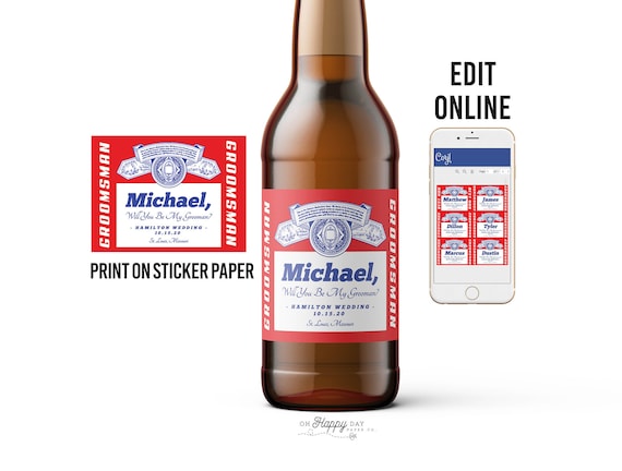 Free Beer Label Maker | Create Printable Beer Labels Online Choose the beer label template that you want to use. There are 6 options. Some have text only and some include an option to add a photo. Click on customize to open the beer bottle label maker. Type in the text that you want to appear and upload a photo (if you chose a template with a photo). Print the personalized beer bottle labels.