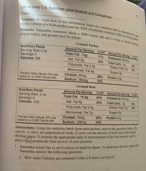 45 comparing nutrition labels activity
